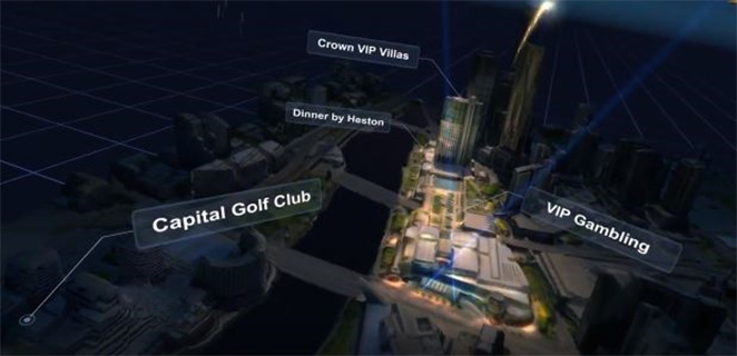 An interactive VR tour that allows the VIP to choose their own adventure, including an VR Croupier & 3D VR Map of South Bank, showcasing CROWN Resorts VIP experiences.